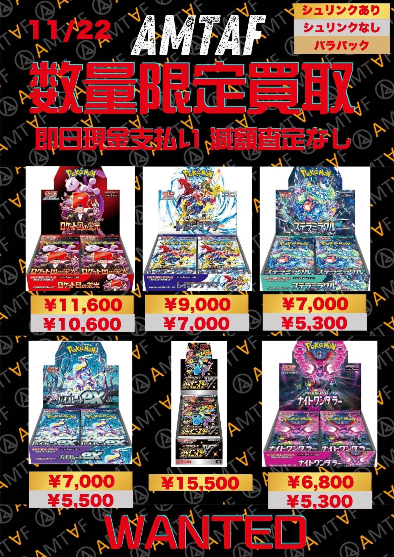 どのBOXも綺麗に保管されており、全て満額査定です!AMTAFではシュリンク付きシュリンクなしに関わらずBOX買取可能です。またバラパックも1パックから買取可能ですので、お気軽にご依頼くださいませ。