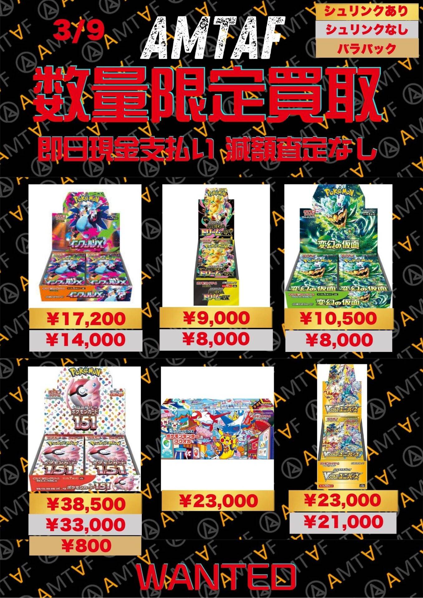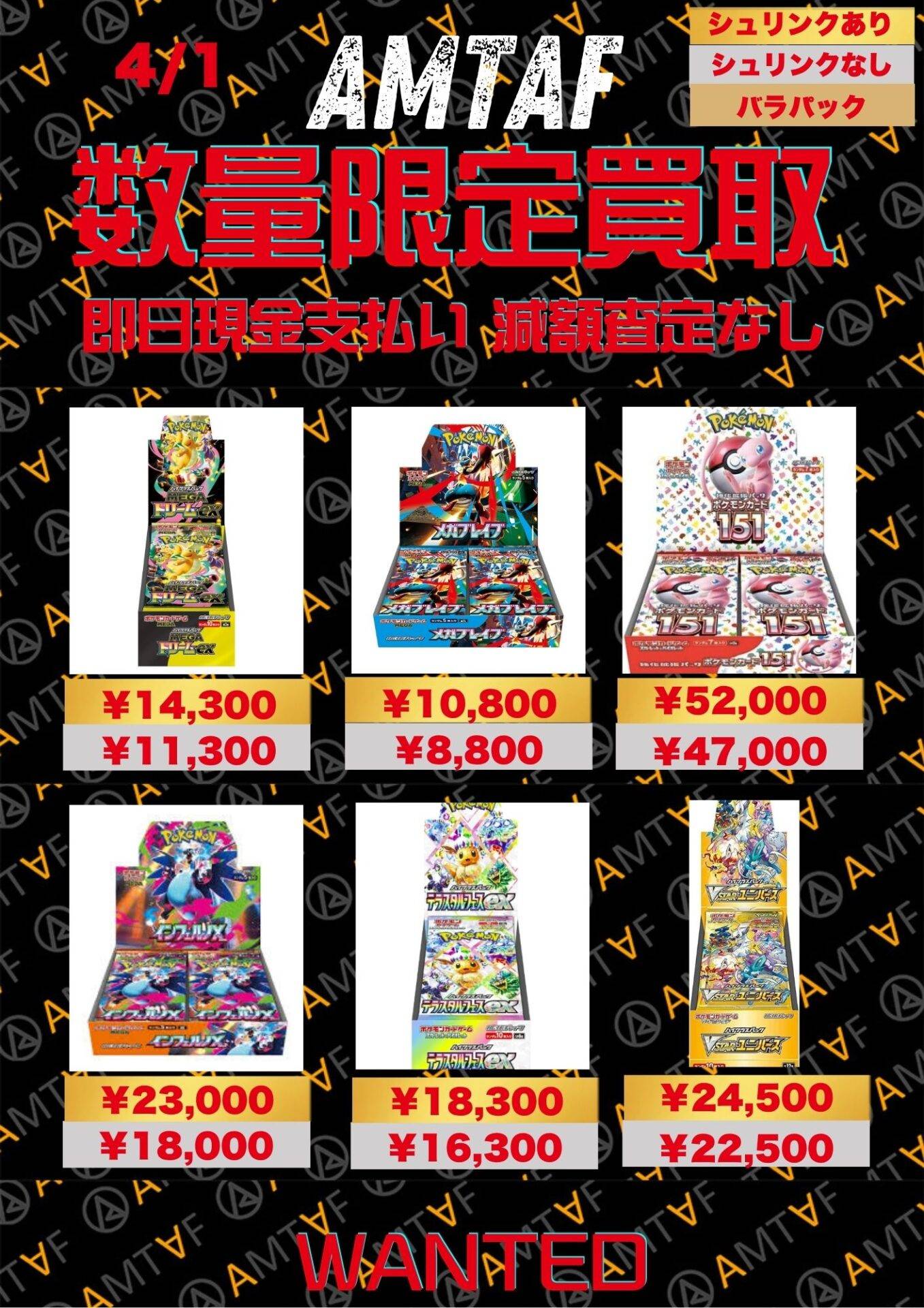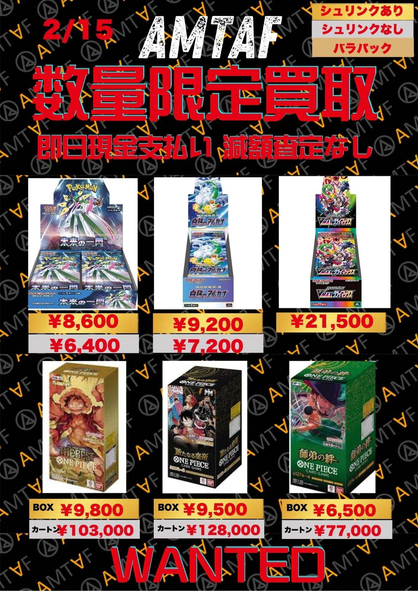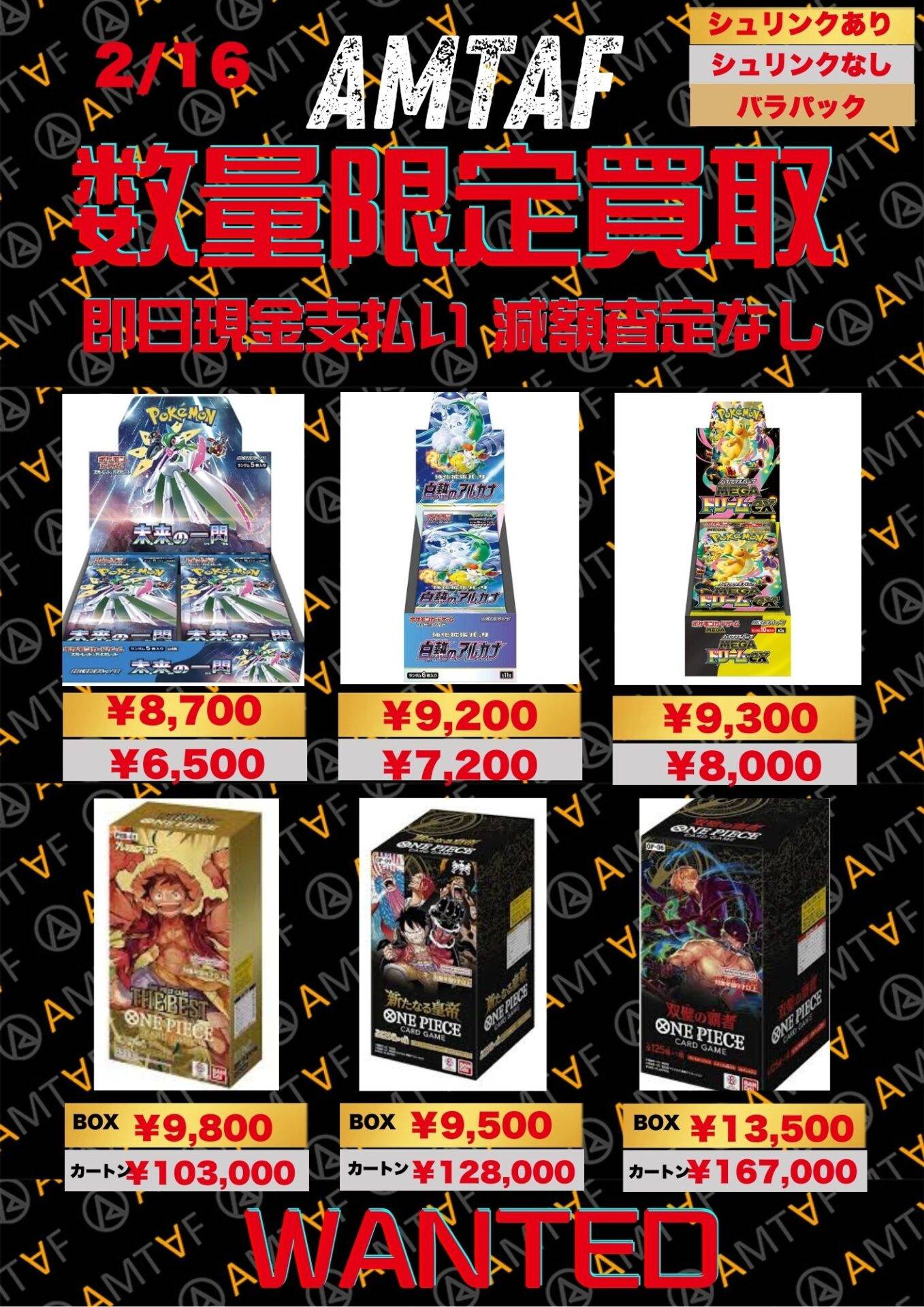 どのBOXも綺麗に保管されており、全て満額査定です!AMTAFではシュリンク付きシュリンクなしに関わらずBOX買取可能です。またバラパックも1パックから買取可能ですので、お気軽にご依頼くださいませ。