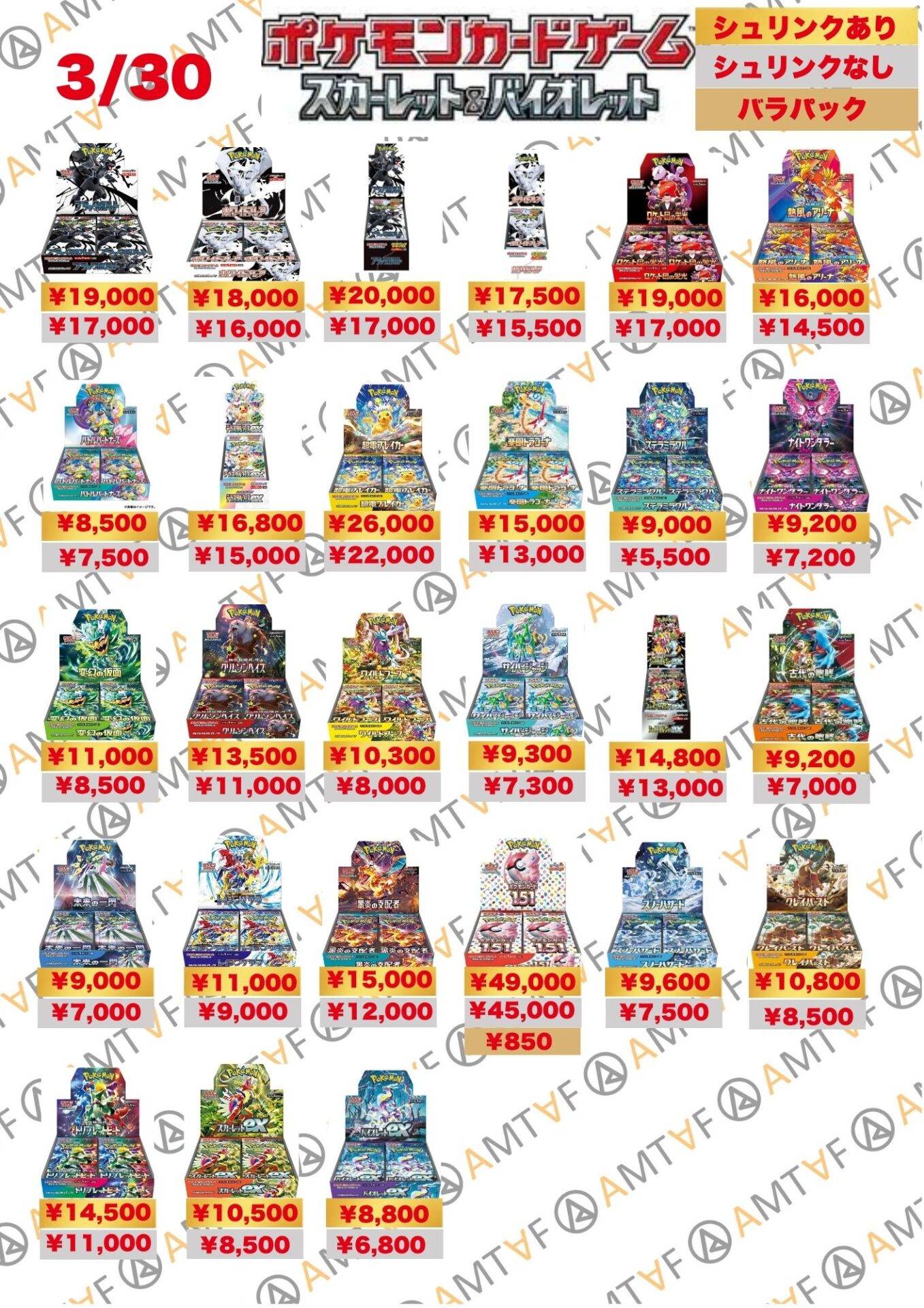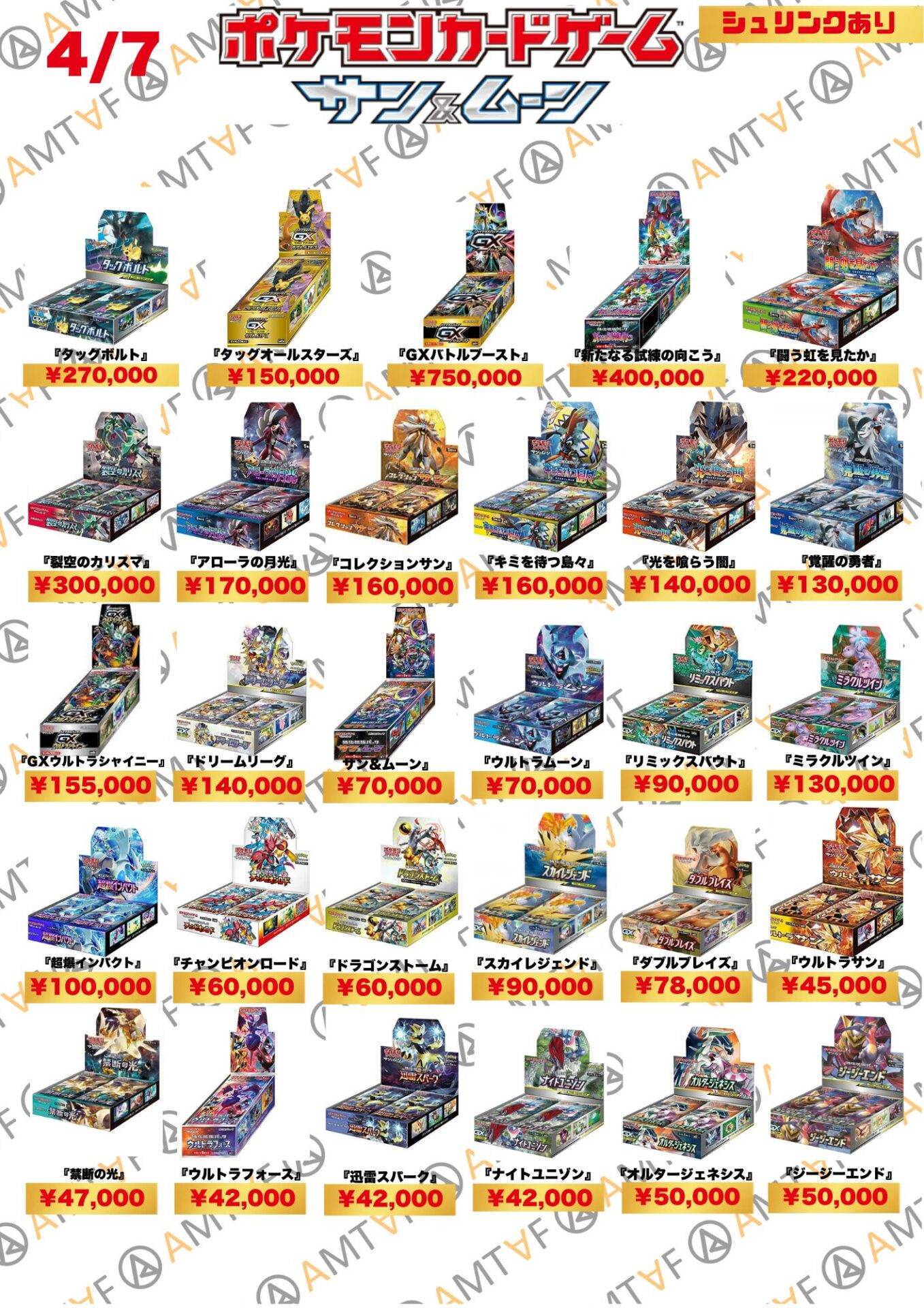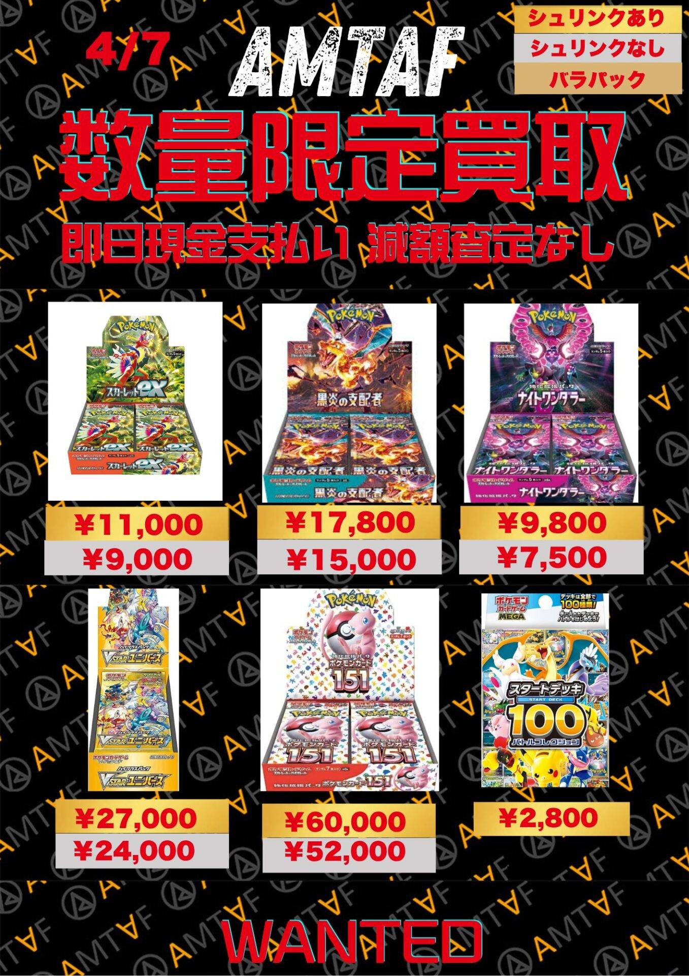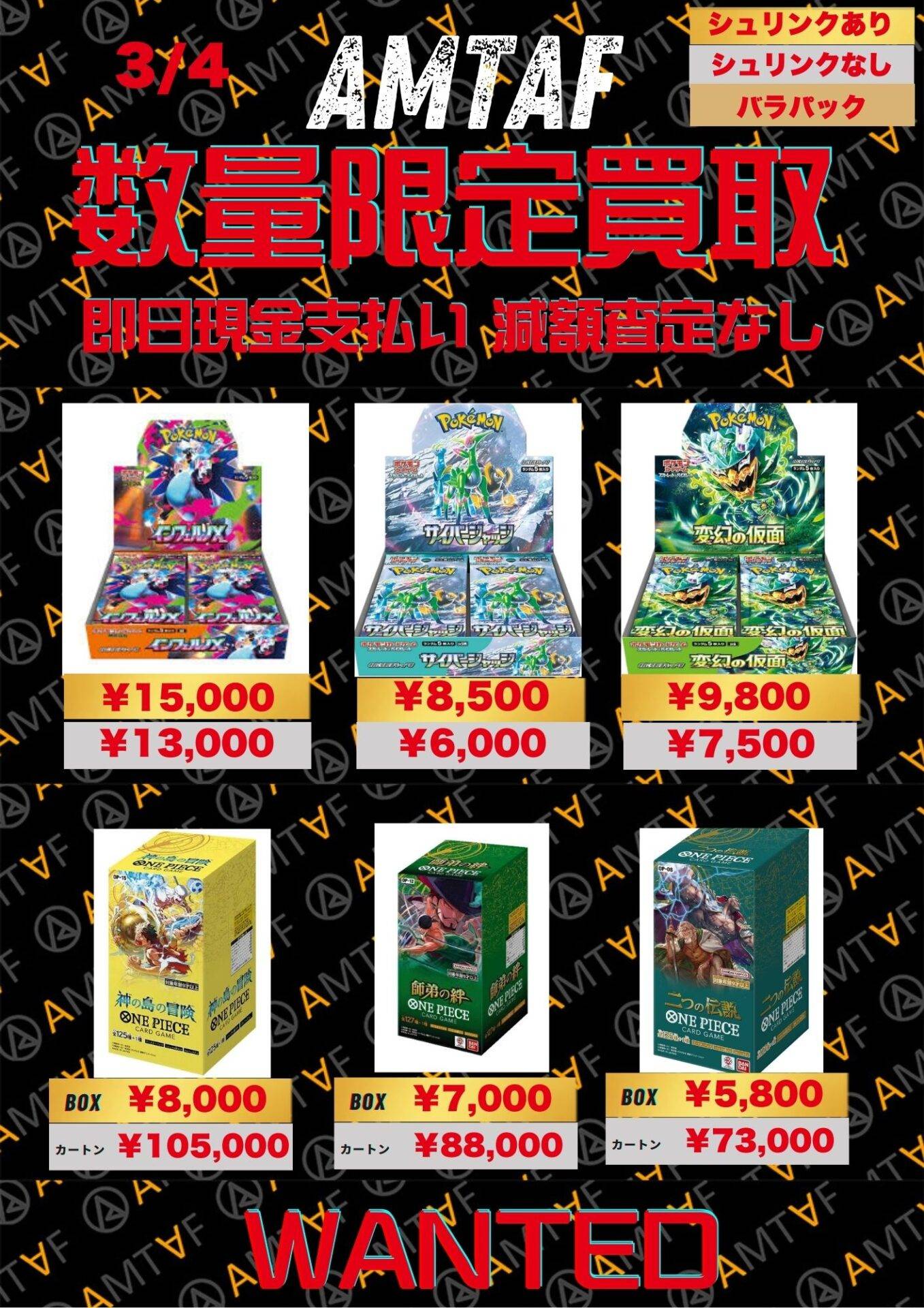 どのBOXも綺麗に保管されており、全て満額査定です!AMTAFではシュリンク付きシュリンクなしに関わらずBOX買取可能です。またバラパックも1パックから買取可能ですので、お気軽にご依頼くださいませ。